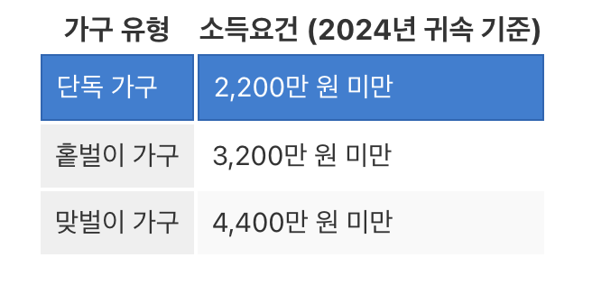 - 2024년 6월 1일 기준, 가구원 전체 재산 합계 2억 4,000만 원 미만