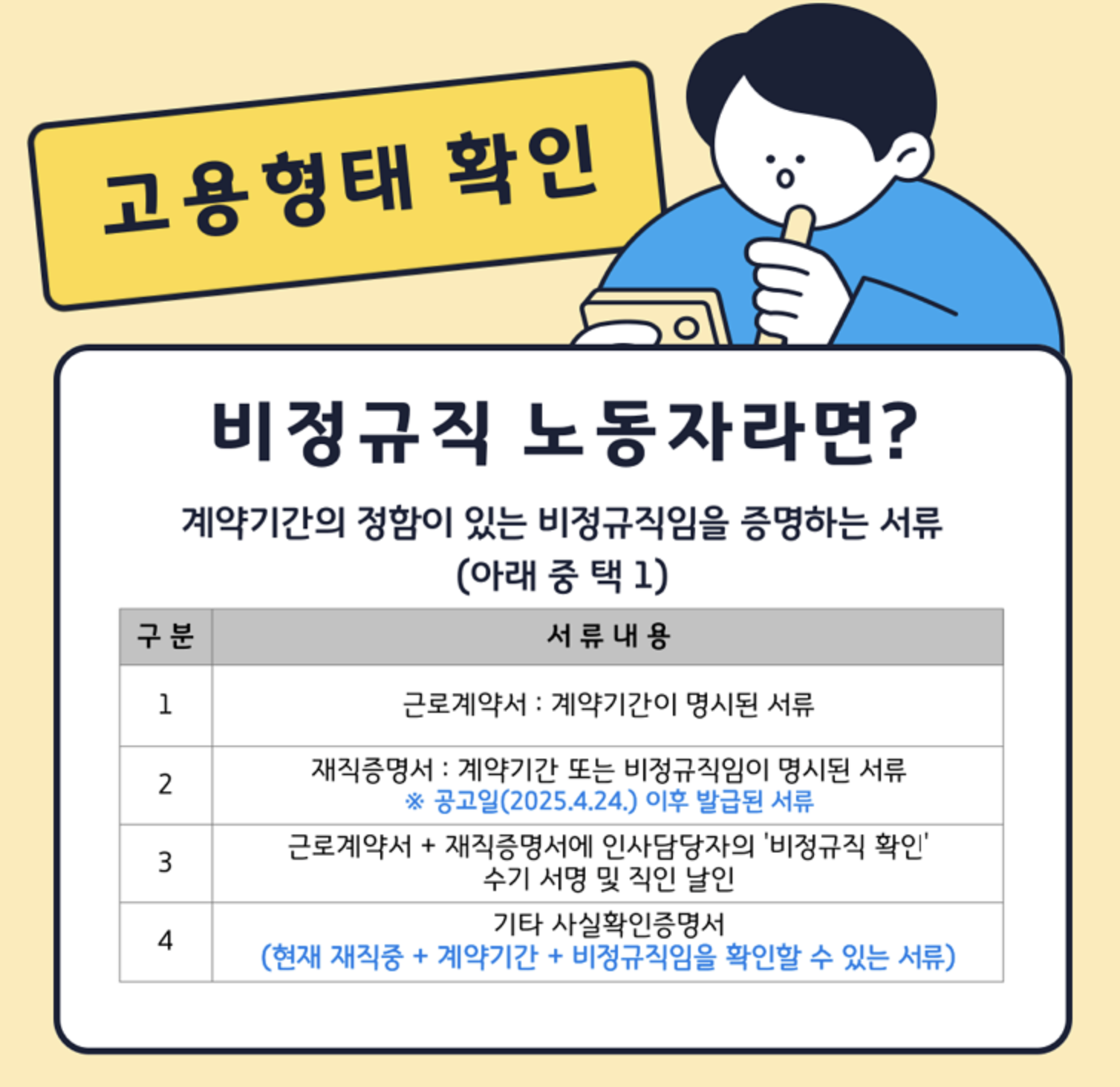- 고용형태 확인서류(근로사실확인서 등)