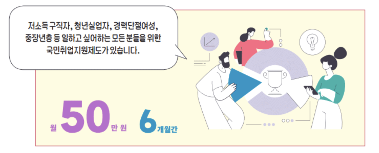 특히 일정 조건을 충족하면 매달 구직촉진수당 50만 원도 받을 수 있어, 생활이 어려운 중장년층에게는 든든한 제도입니다.