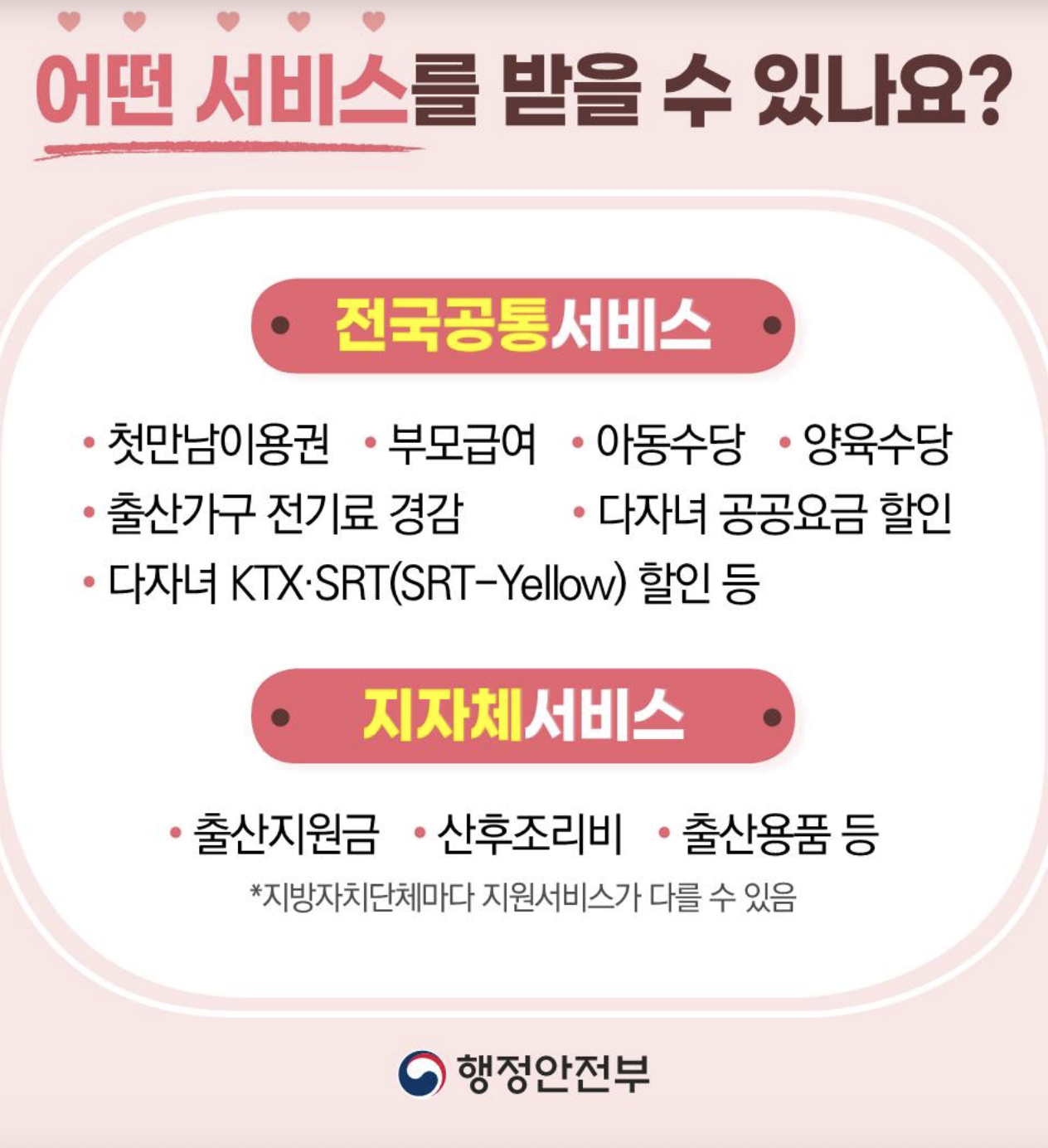 아동수당 외 함께 받을 수 있는 지원 제도