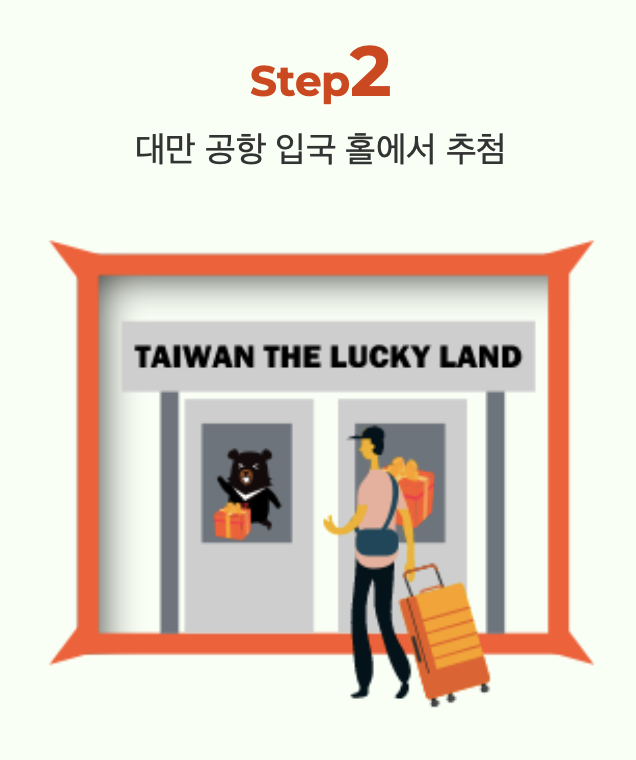 - 대만 도착 당일, QR코드를 입국 공항 이벤트 데스크에 제시하면 추첨을 통해 당첨 여부를 확인할 수 있습니다.