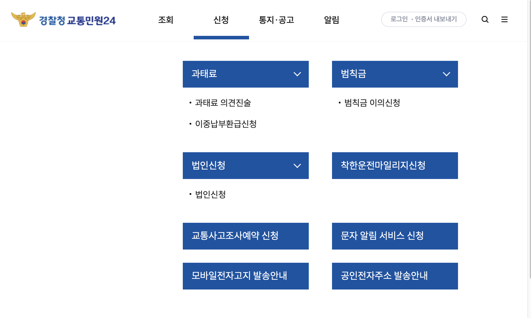 교통민원24는 경찰청에서 운영하는 교통행정 민원 포털 사이트입니다.