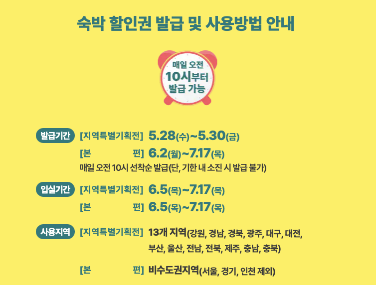 여행 성수기인 여름철을 앞두고 국민들의 숙박 비용 부담을 덜어주는 동시에, 지역경제 회복에도 기여하고자 기획되었습니다.