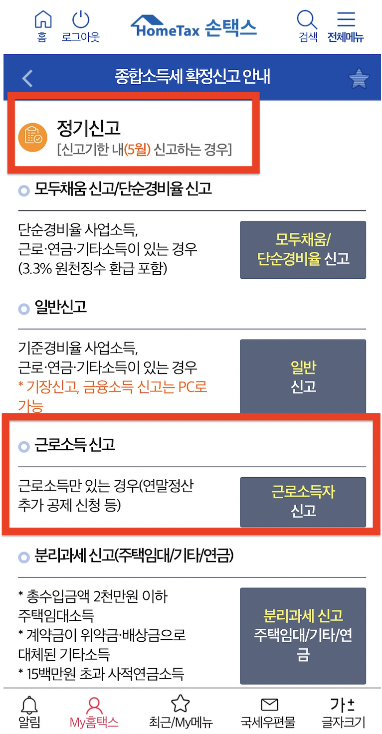 - [종합소득세 신고] → [근로소득자 신고서 작성] 선택