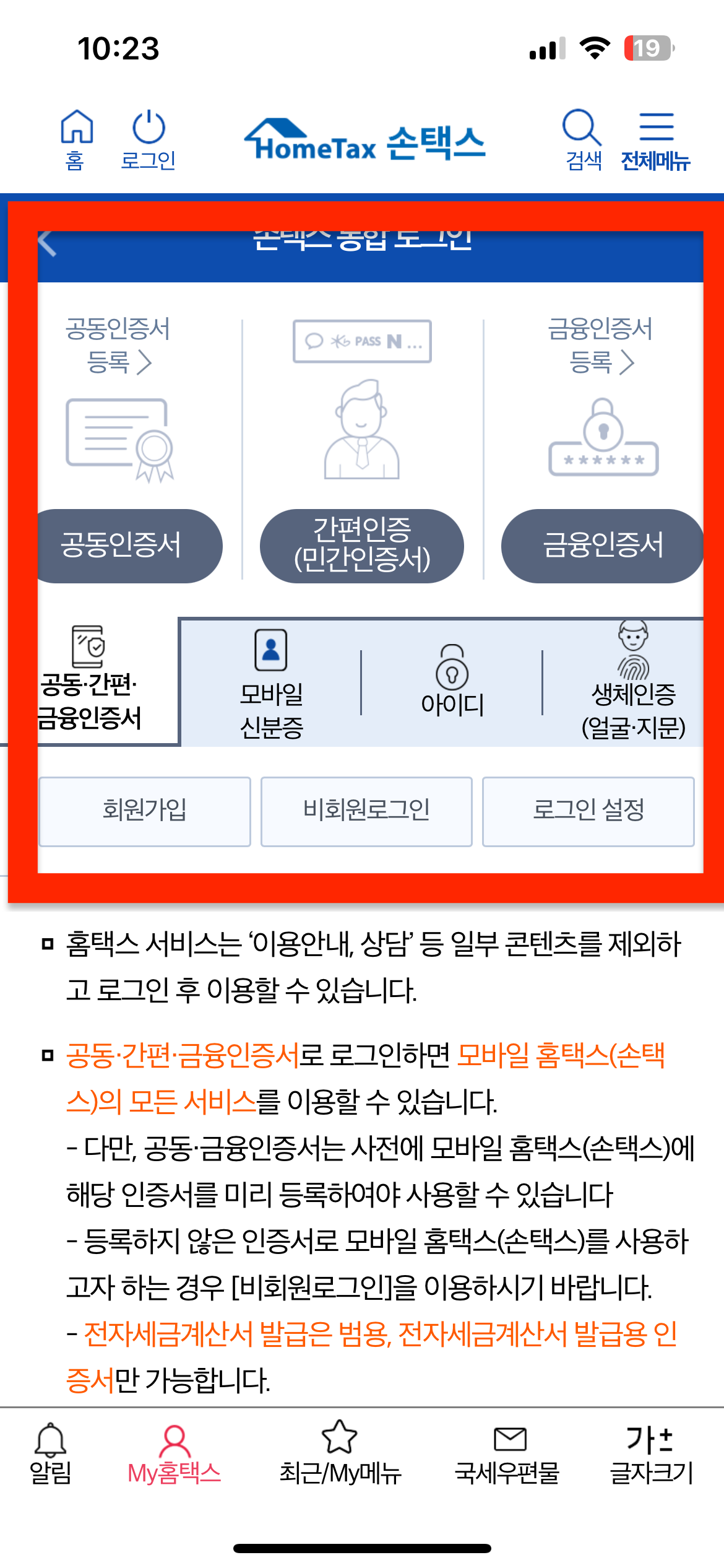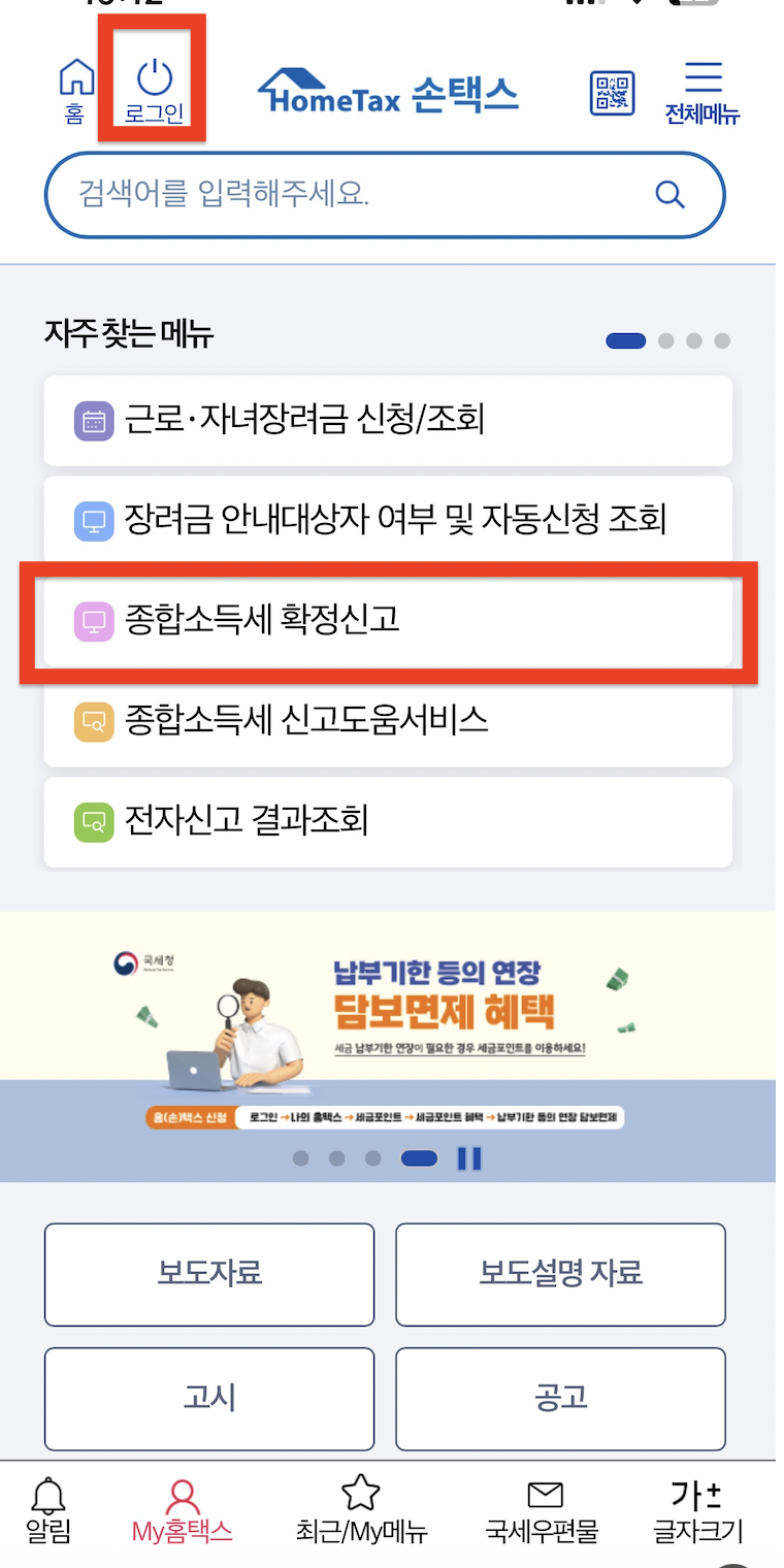 - 손택스 앱 실행 후 로그인