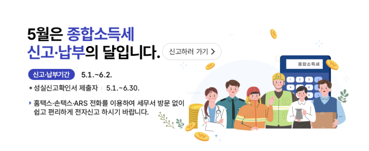 종합소득세 신고는 매년 5월에 진행되며, 홈택스를 통해 손쉽게 접수할 수 있습니다.
