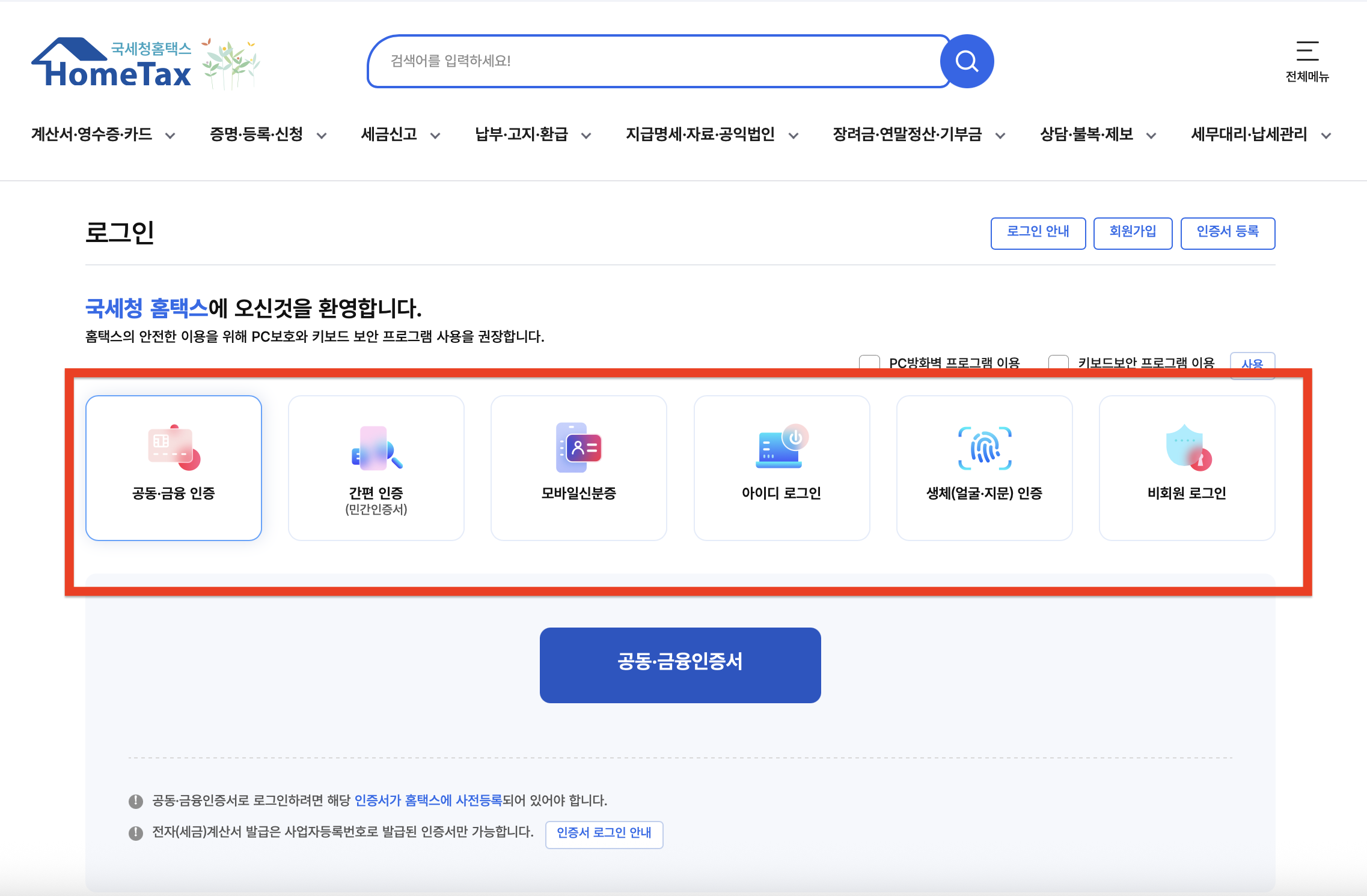 - 국세청 홈택스 접속