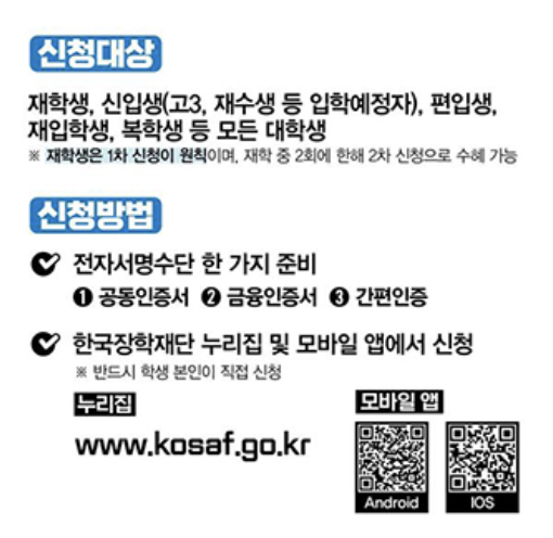 - 한국장학재단 홈페이지 또는 모바일 앱 접속