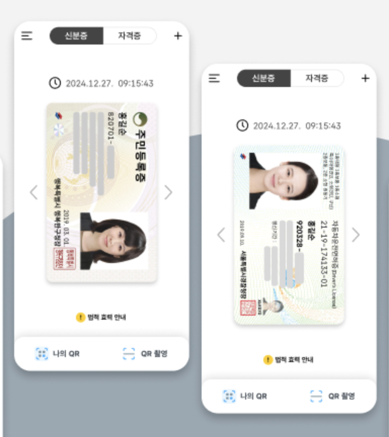 또한, 경찰청 등과 연동되어 실시간 검증이 가능하므로 기존 실물 면허증처럼 사용할 수 있습니다.