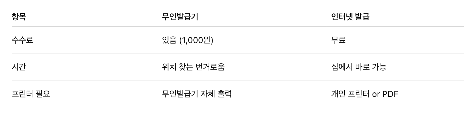 무인발급기 vs 인터넷 발급 비교