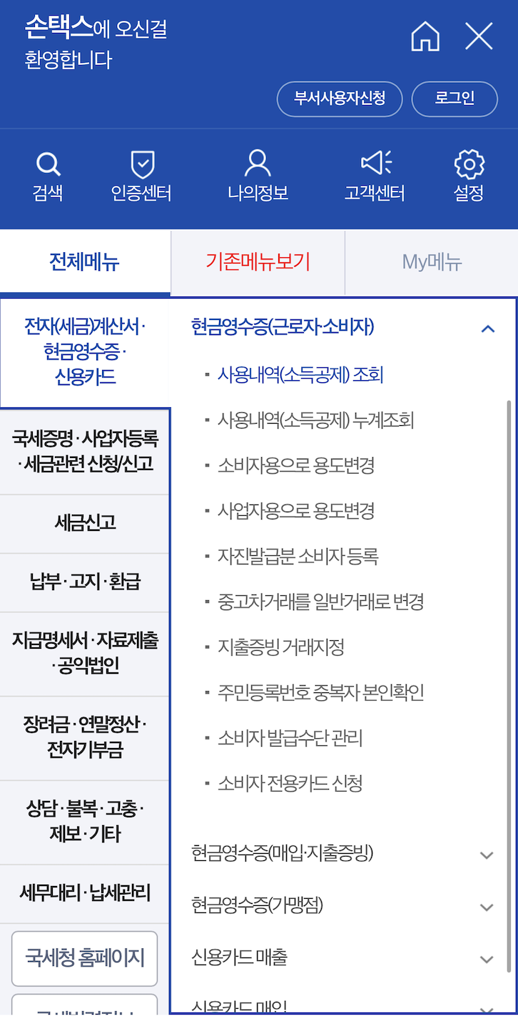 ▣ 홈택스에서 현금영수증 조회하는 방법