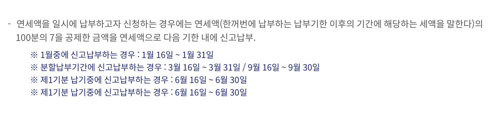 정기 납부자는 위의 일정에 맞춰 1년에 두 번 납부하면 됩니다.