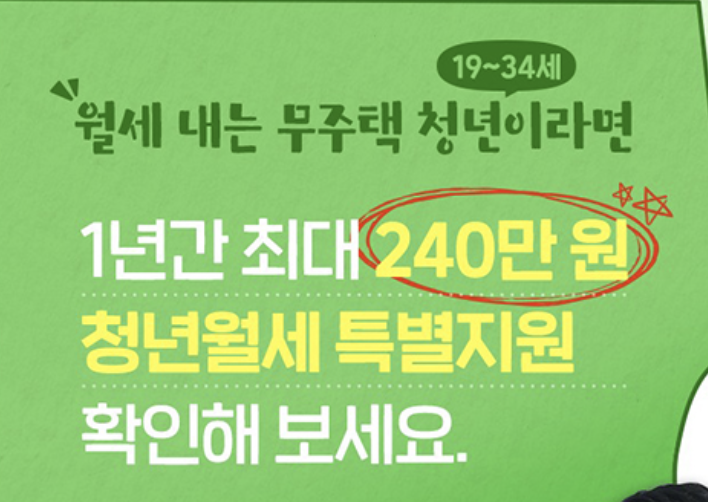 서울에 거주하는 청년 1인 가구를 대상으로 월 최대 20만 원씩 12개월간 월세를 지원해주는 제도로, 생애 1회에 한해 최대 240만 원까지 지원받을 수 있습니다.