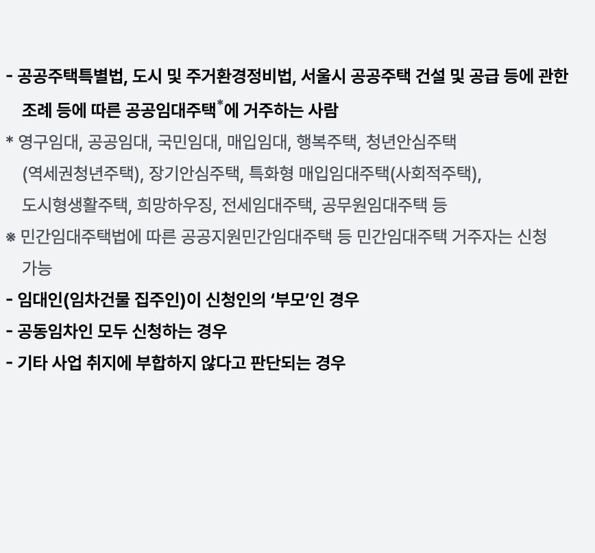 - 신청 방법: 서울주거포털 홈페이지를 통한 비대면 온라인 신청