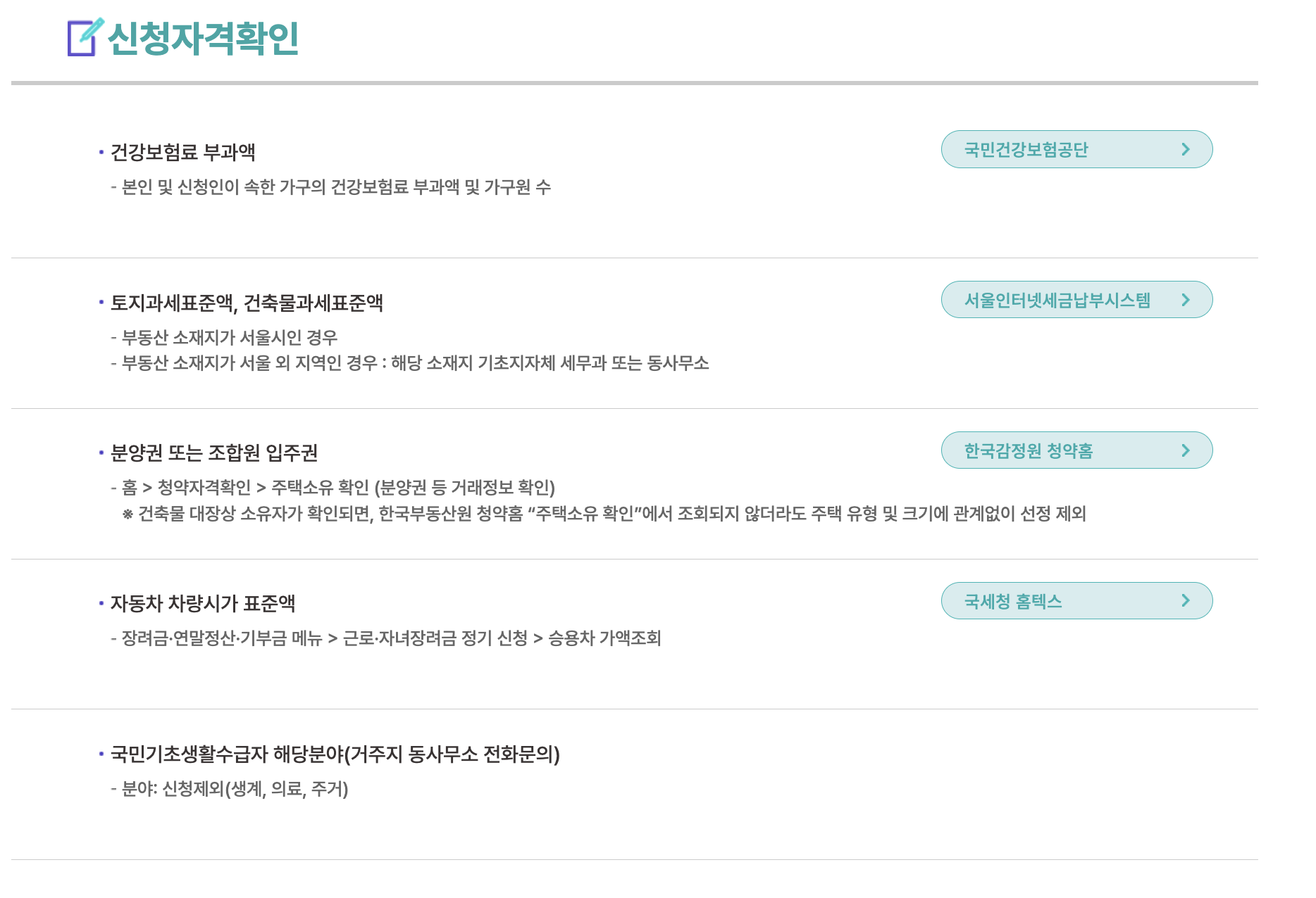 - 국민기초생활보장 수급자 (생계급여/주거급여)