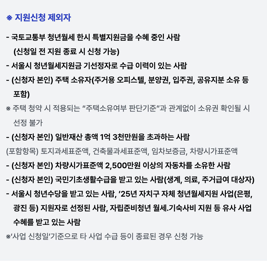 모든 청년이 지원 대상이 되는 것은 아니며, 다음에 해당할 경우 신청이 불가능합니다.