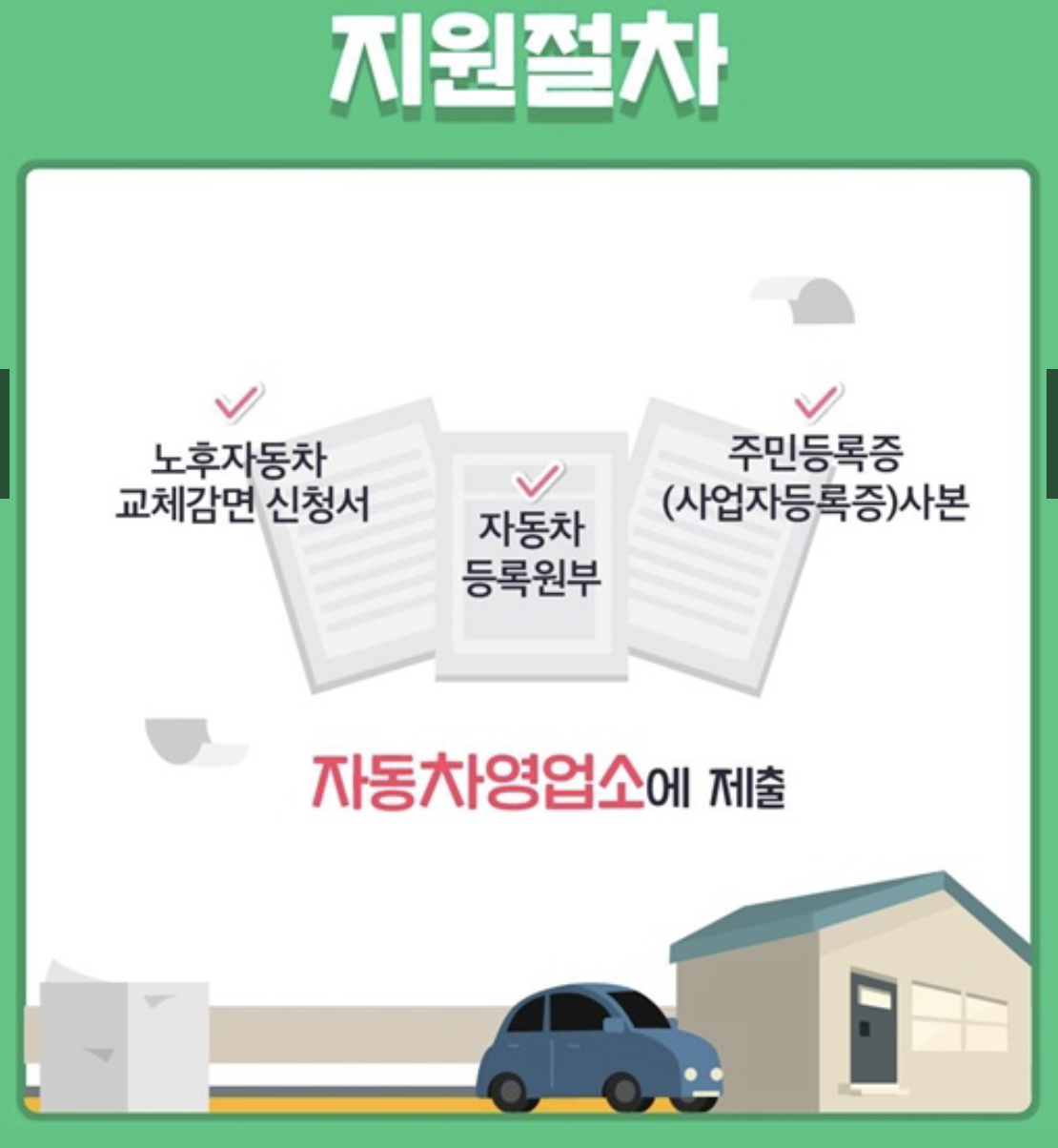 감면 신청을 위한 절차는 비교적 간단합니다. 다음 서류를 준비해 자동차 영업소에 제출하면 됩니다.
