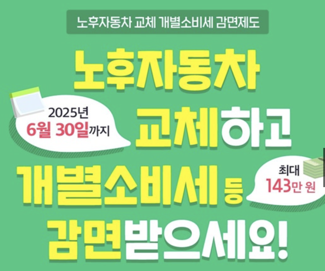 10년 이상 된 노후차량을 보유하고 있다면, 개별소비세 감면을 받을 수 있는 절호의 기회가 다가왔습니다.